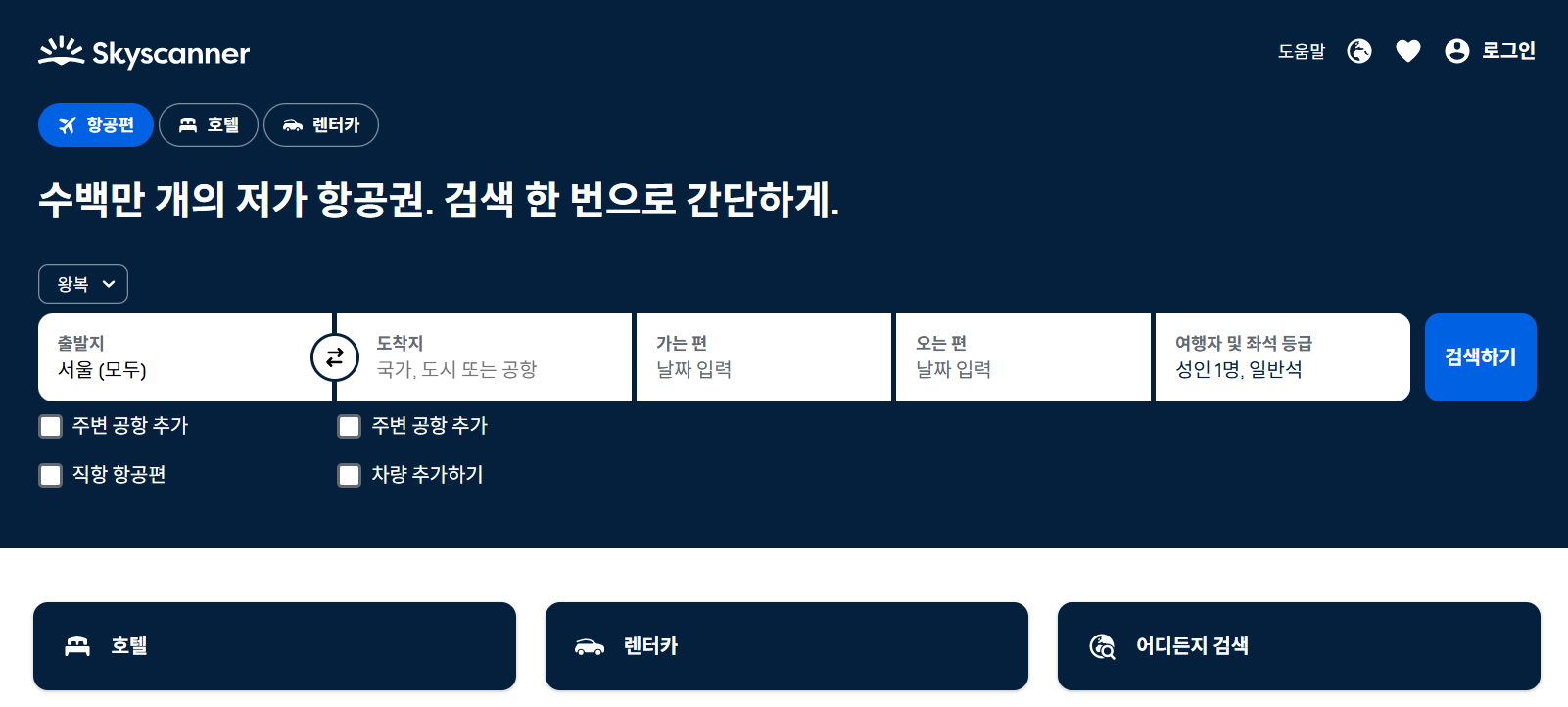 1. 스카이스캐너 (Skyscanner) – 항공권 최저가 검색 필수